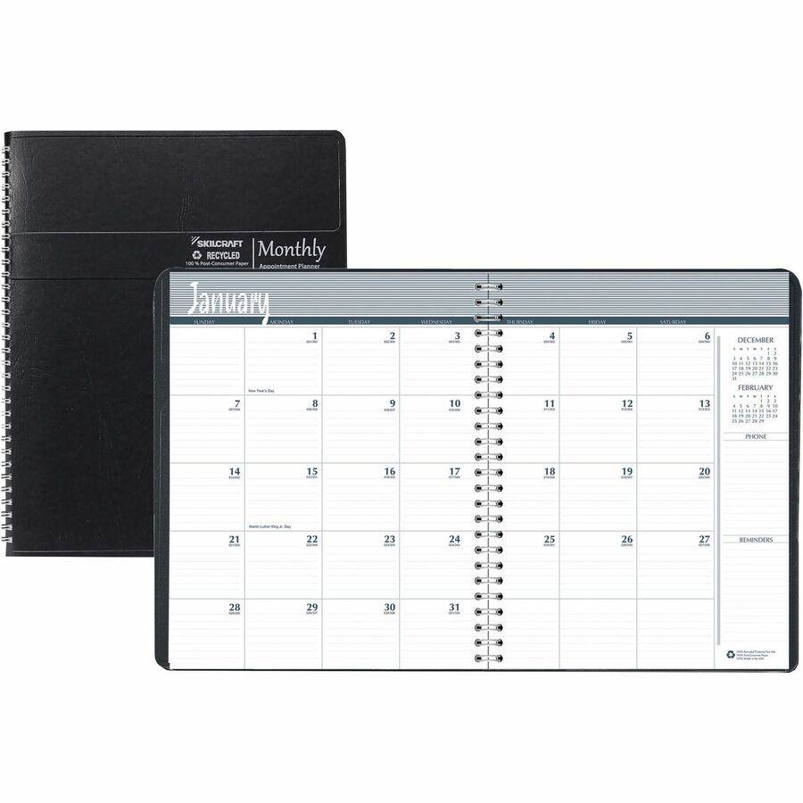 SKILCRAFT® Monthly Planner 14-Month Wire-Bound